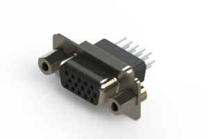 D-Sub连接器 | 防水 | 高密度 | 0.090" (2.29mm) 端子间距 x 0.078" (1.98mm) 排距 | 90度 | 公座